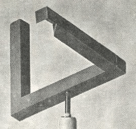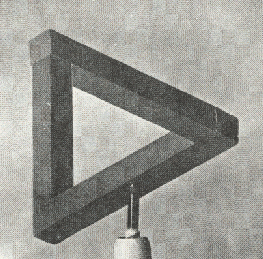 Este triángulo ilusorio ha sido "construido", pero sólo puede ser observado (desde un punto) o fotografiado en una posición dada (se le ha montado sobre un eje para buscar esa posición). Se pude observar que,en realidad, la estructura no está cerrada y sólo parece cerrada en una posición dada.